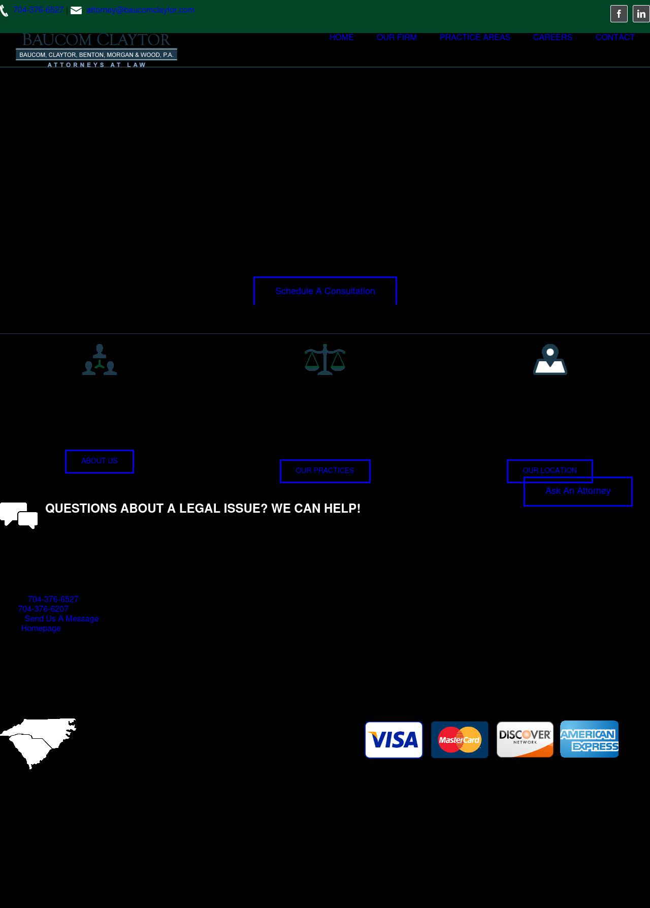 Baucom, Claytor, Benton, Morgan & Wood, P.A. Charlotte Real Estate Lawyers | Concord Personal Injury Attorneys | Mathews Estate Planning Law Office North Carolina NC The personal attention you deserve. Call 704-315-2376 today to schedule a consultation with an attorney from the Charlotte law offices of Baucom, Claytor, Benton, Morgan and Wood.