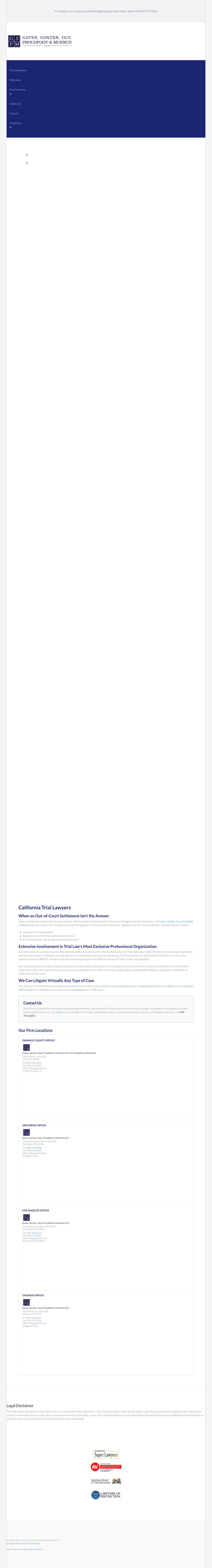 Gates, O'Doherty, Gonter & Guy, LLP Gates, O'Doherty, Gonter & Guy LLP, Civil Litigation Attorneys - Trial Lawyers - California Law Firm At the law firm of Gates, O'Doherty, Gonter & Guy LLP, we have unparalleled experience in litigating cases in court. Our combined experience includes hundreds of trials with a verdict success rate is almost 96% of approximately 400 that were taken to verdict.