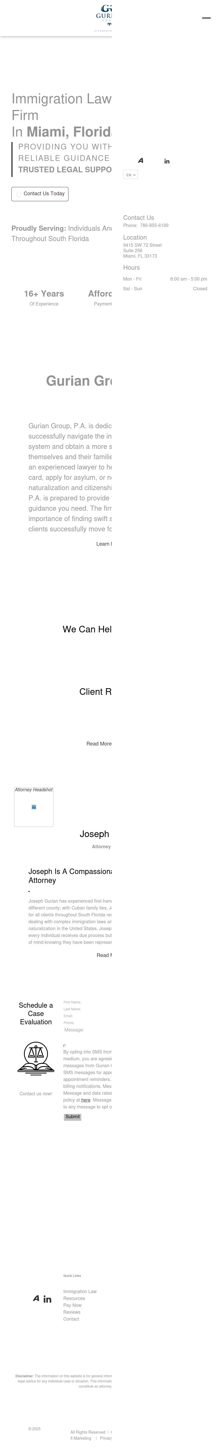 Gurian Group P.A. Coconut Grove Immigration Lawyer | Deportation Proceedings Gurian Group P.A. is an immigration law firm located in Coconut Grove, Florida. Take advantage of the benefits of a licensed attorney. Call us at 305-705-6669.