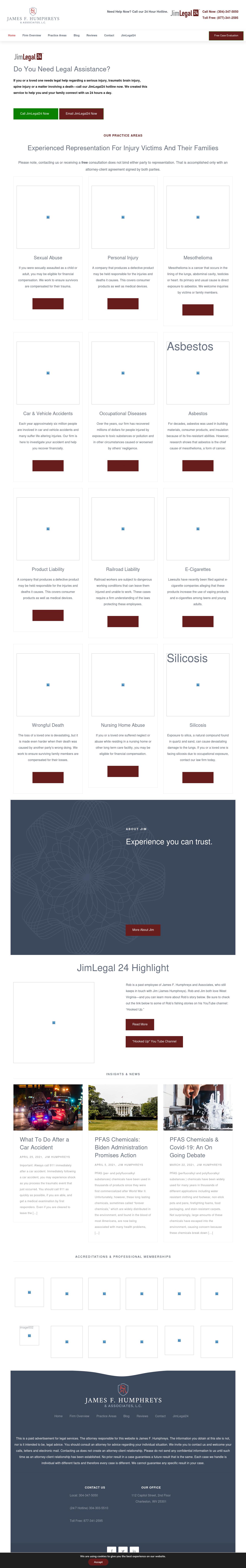 James F. Humphreys & Associates, L.C. Charleston WV Personal Injury Attorney | Asbestos and Mesothelioma Attorneys James F. Humphreys & Associates, L.C., represents injured people in West Virginia and other states. Call 304-347-5050 for a free consultation.