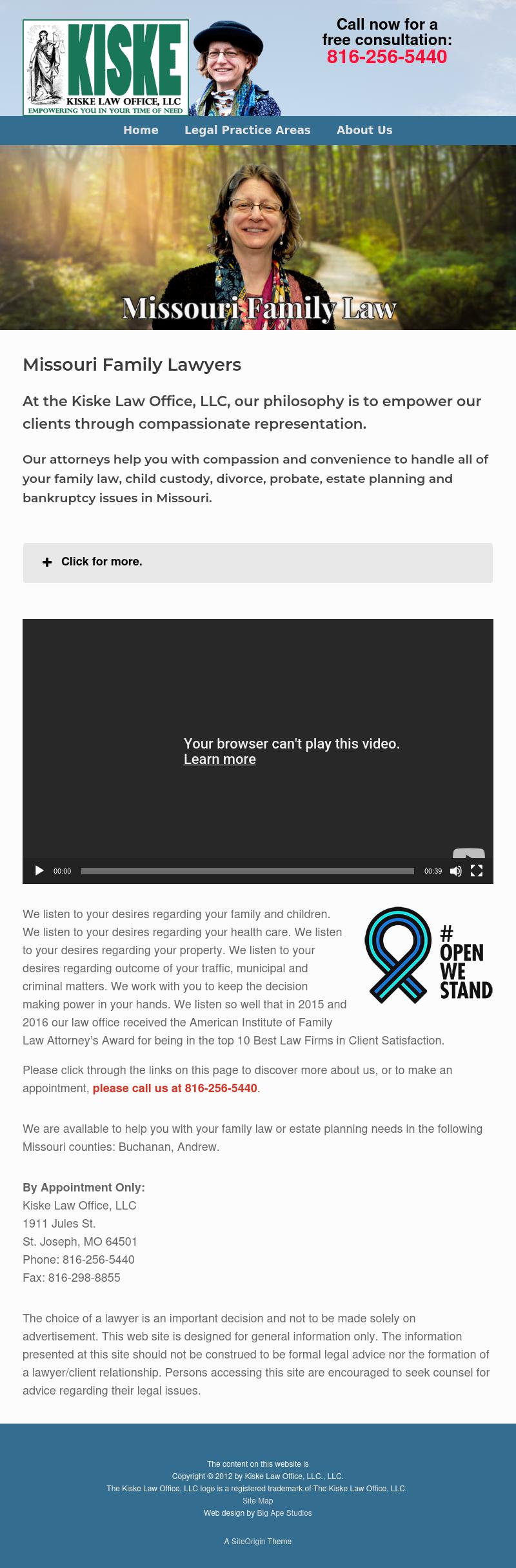 Kiske Law Office, LLC Kiske Law Office - Missouri - Family Law, Juvenile, Traffic, Immigration, etc. Empowering you with compassionate legal representation, we work to resolve child custody and related cases efficiently, peacefully and cost effectively.