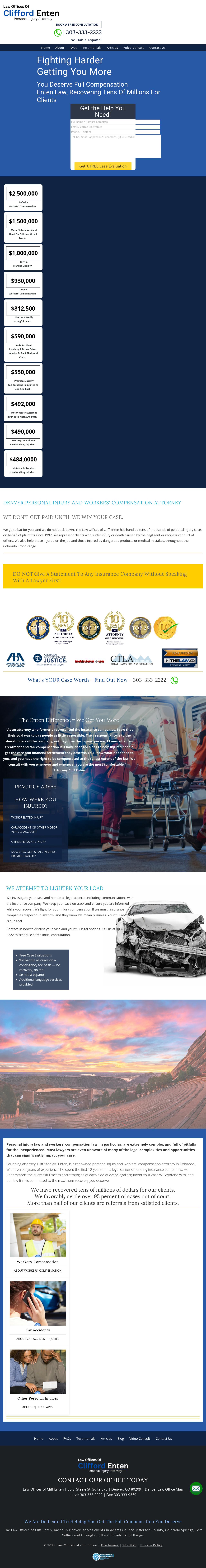 Law Offices of Cliff Enten Denver Personal Injury & Workers Compensation Lawyer Leading workers' compensation and personal injury lawyers in Denver, serving the Colorado Front Range. Call the Law Offices of Cliff Enten at 303-952-0703.