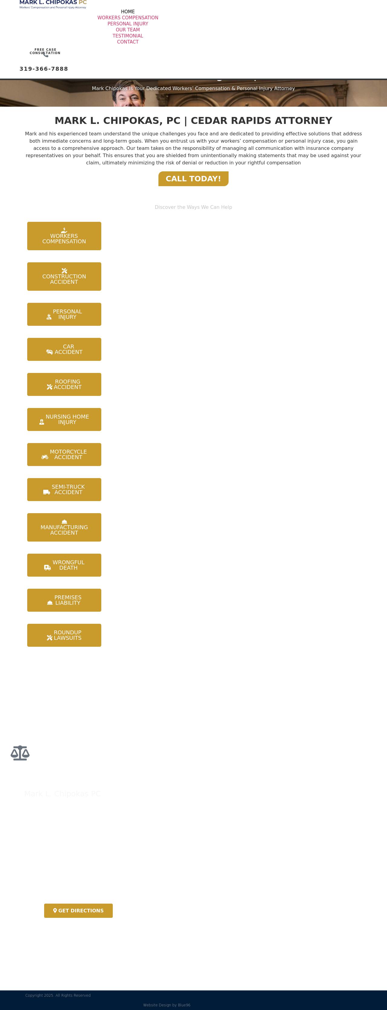 Mark L. Chipokas PC Cedar Rapids Workers Compensation Attorney | Iowa Personal Injury Lawyer | Linn County Criminal Defense Iowa personal injury attorney. Mark L. Chipokas PC. More than 20 years of experience. Call 319-423-8011. Free initial consultation.