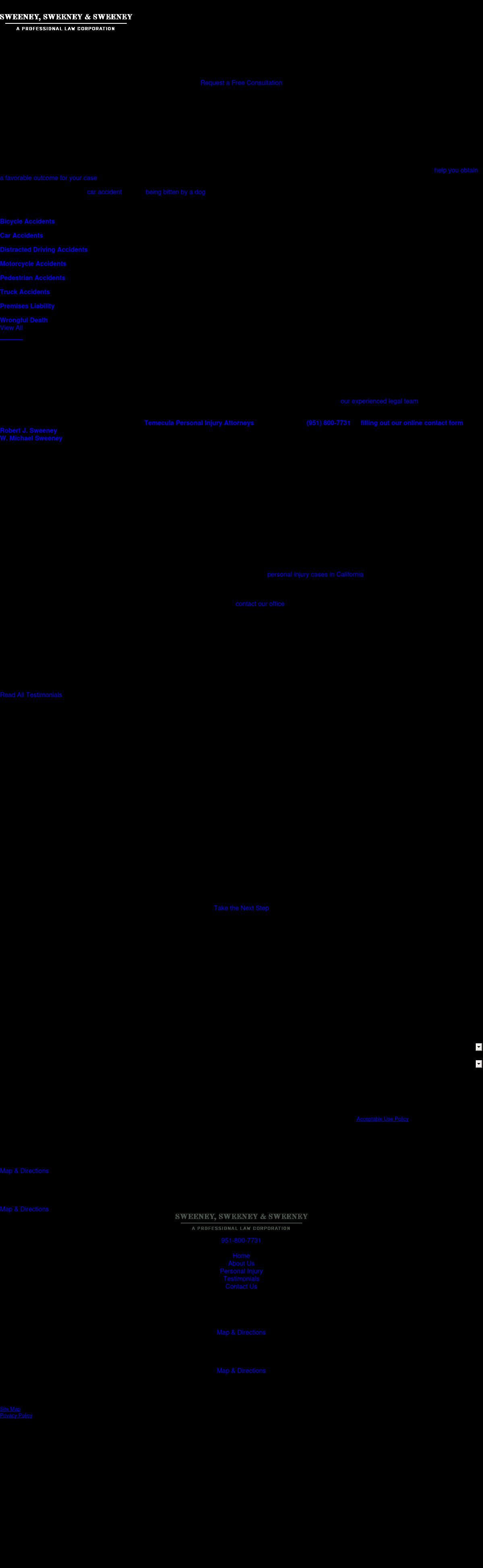 Sweeney, Sweeney & Sweeney, APC Temecula Personal Injury Lawyer | Sweeney, Sweeney & Sweeney APLC Personal injury in Temecula, California, or nearby? Call Sweeney, Sweeney & Sweeney APLC for a free initial consultation at 951-676-8722.