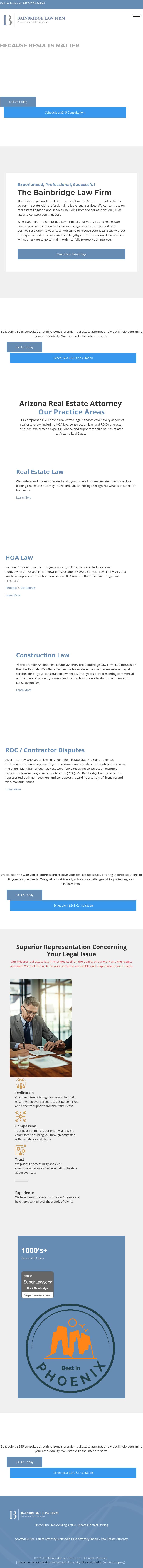 The Bainbridge Law Firm, L.L.C. Arizona Real Estate Lawyer | Phoenix HOA Law Attorney | Scottsdale AZ Construction Litigation Contact an experienced real estate attorney at Bainbridge Law Firm in Scottsdale, Arizona. Call 602-274-6369 to schedule an initial consultation.