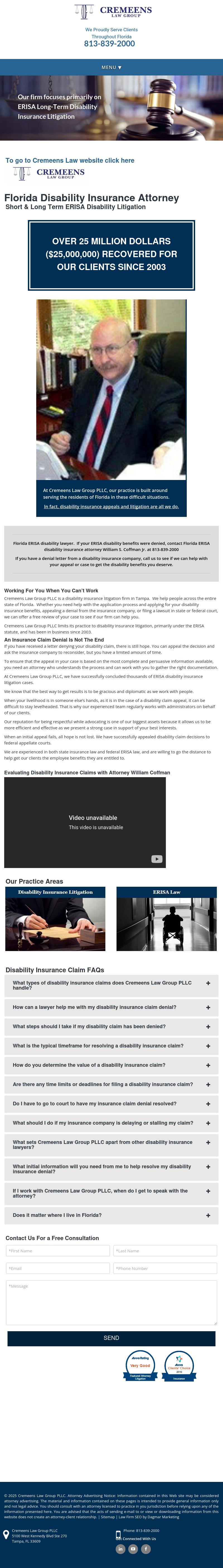 Coffman Law Tampa ERISA Lawyer | Orlando Insurance Litigation Attorney | Jacksonville Employee Benefits If your disability insurance claim has been denied, contact Coffman Law at 813-935-7030 for a free consultation with an experienced attorney.