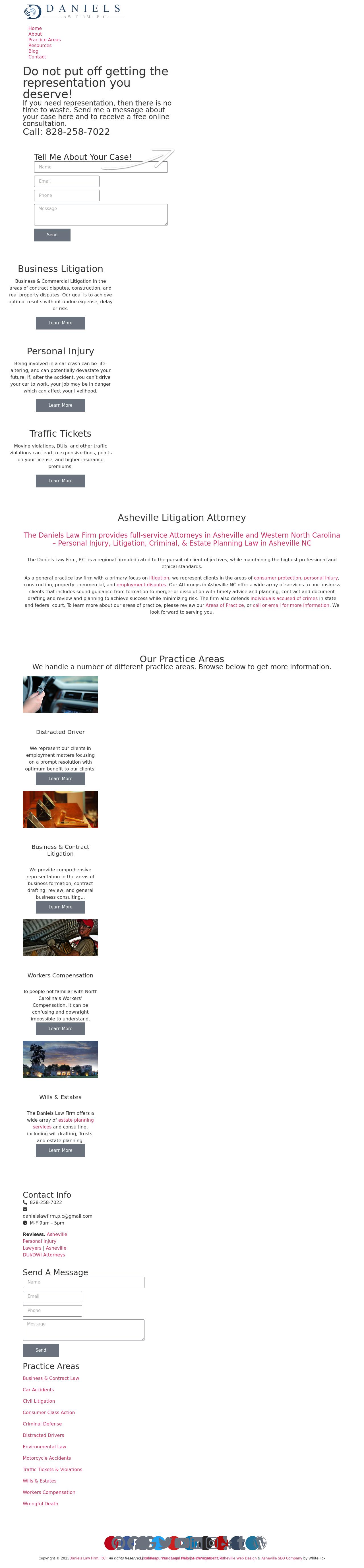 Daniels Law Firm Asheville Litigation Lawyer Daniels Law Firm Daniels Law Firm, Asheville, NC Litigation Lawyer, Traffic Ticket Lawyer, DUI Defense Attorney, Drug Possession Lawyer Asheville, NC and Asheville Personal Injury Lawyer