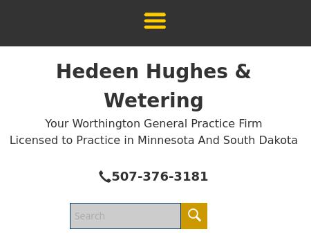 Hedeen, Hughes & Wetering Hedeen Hughes & Wetering Hedeen, Hughes, and Wetering of Worthington, Minnesota specialize in probate, real estate, personal injury, and business liquidation law.