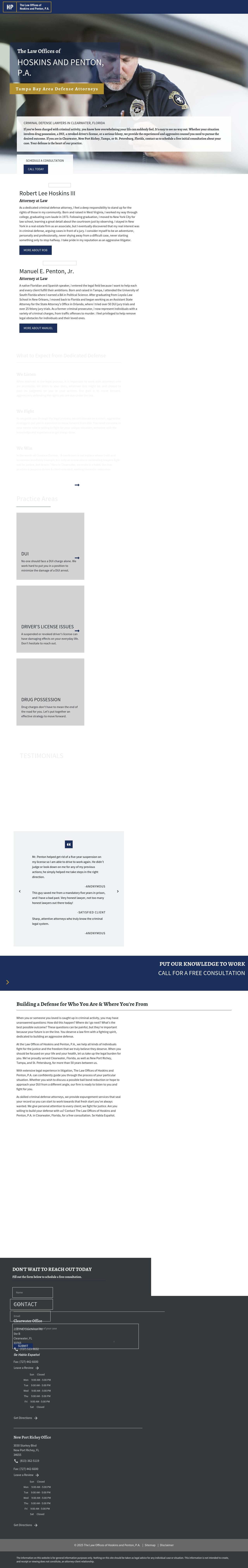 Hoskins & Penton, P.A. Clearwater Criminal Defense Attorneys | Criminal Trial Lawyers | New Port Richey Experienced criminal defense attorneys serving the Clearwater, Florida, area. Call us at 727-446-4059 for a free consultation in criminal defense and injury cases.*