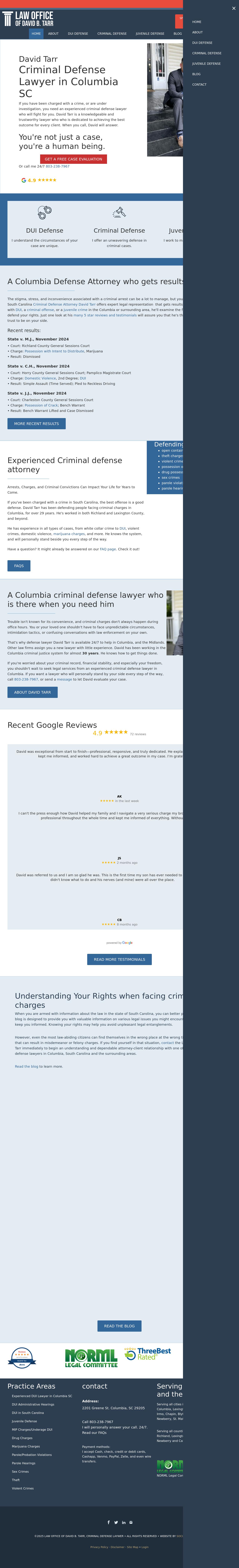 Law Office of David B. Tarr, L.L.C. Columbia SC Criminal Lawyer | DUI DWI Defense in South Carolina Columbia criminal defense lawyer David B. Tarr is committed to protecting the rights of his clients. Call 803-753-1824 to schedule a free consultation.