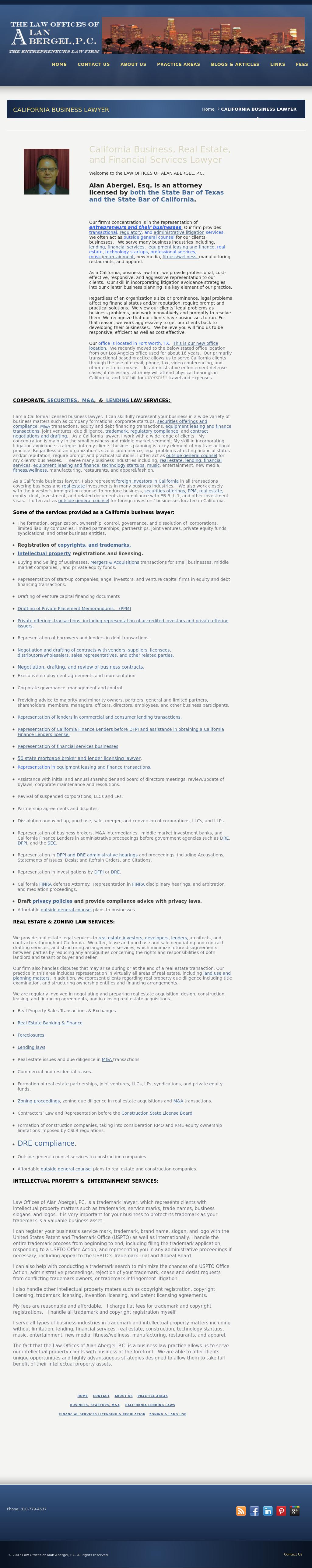 LAW OFFICES OF ALAN ABERGEL, P.C. Los Angeles Business Lawyer Los Angeles Business Law Office of Alan Abergel, P.C. A Los Angeles based business and real estate lawyer with offices in Encino and Santa Monica, CA. The Entrepreneurs Law Firm.