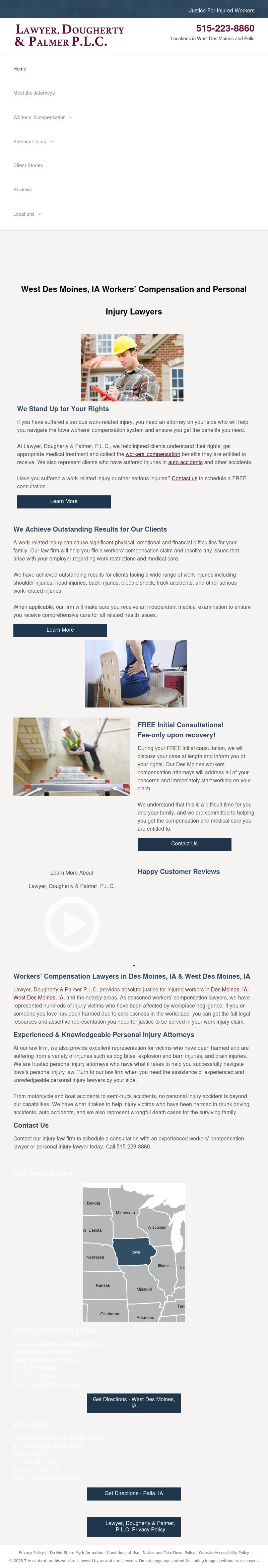 Lawyer, Dougherty, Palmer & Flansburg, P.L.C. Des Moines Workers' Compensation Attorneys | Central Iowa Personal Injury Lawyers | Ames Work Related Injury Lawyers IA Discuss your case with one of our Des Moines workers' compensation attorneys. Call Lawyer, Dougherty, Palmer & Flansburg, P.L.C., at 888-416-6998.