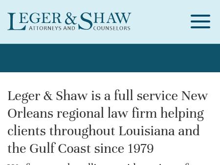 Leger & Shaw New Orleans Personal Injury Lawyers | Louisiana Offshore Injury Claims | Admiralty and Maritime Law Contact an offshore personal injury lawyer at Leger & Shaw in New Orleans, Louisiana, today by calling toll free 1-888-708-8950.