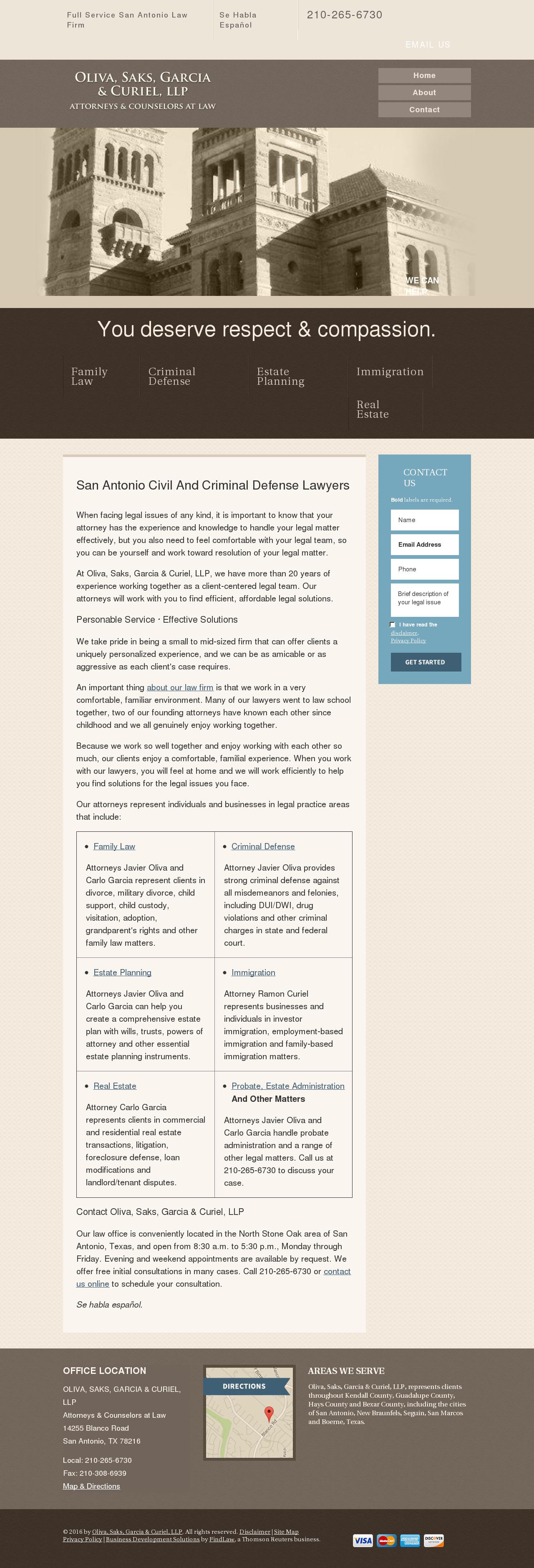 Oliva, Saks, Garcia & Curiel, LLP San Antonio Criminal Defense Attorneys | New Braunfels Immigration Lawyers The San Antonio criminal defense lawyers of Oliva, Saks, Garcia & Curiel, LLP, have more than 20 years of combined experience. Call 210-265-6730.