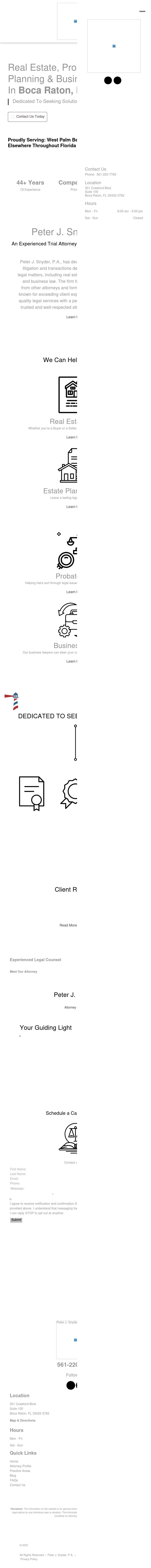 Peter J. Snyder, P.A. Boca Raton Litigation Attorney | Transactions, Real Estate At Peter J. Snyder, P.A., in Boca Raton, Florida, we provide skilled and trusted legal advice in your complex case. Call our firm at 561-544-7324 today.