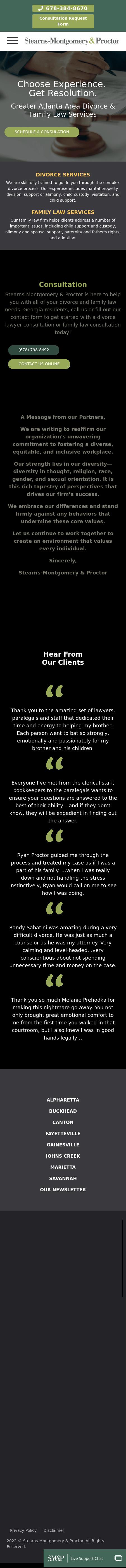 Stearns-Montgomery & Proctor Stearns-Montgomery & Proctor | Atlanta Divorce Lawyers Your trusted team of divorce and family law lawyers in Atlanta, Georgia. We are dedicated to pursuing your best interests and protecting your legal rights.