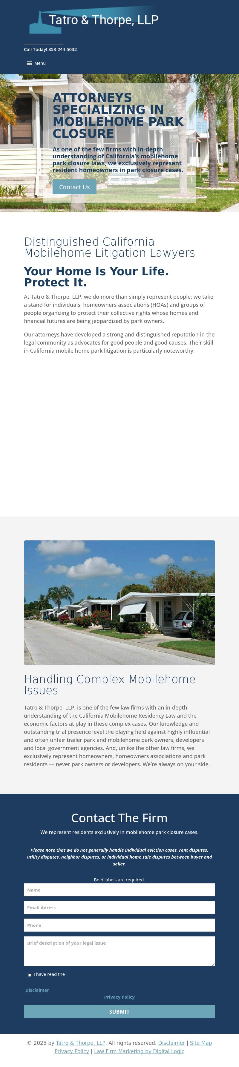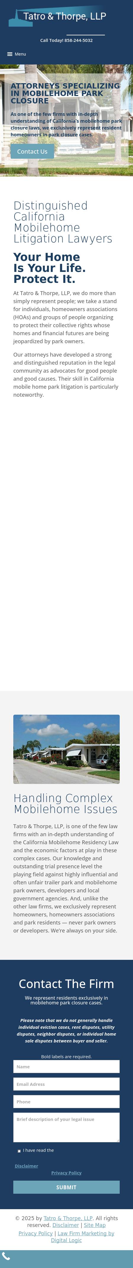 Tatro & Zamoyski, LLP California Mobile Home Litigation Attorney | San Diego Trailer Park Lawyers | Tatro & Zamoyski, LLP Call 858-244-6584 to speak with an experienced California mobile home litigation attorney at Tatro & Zamoyski, LLP, who can protect your home.